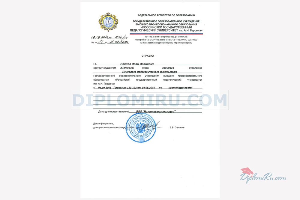 На нашем сайте Вы можете купить справку об обучении в ВУЗе, техникуме или колледже, ПТУ, школе для предоставления по месту требования. Справка изготавливается на обыкновенной бумаге формата А4, заполняется по стандарту или по образцу реально выданных в том или ином учебном заведении справок. За долгие годы работы мы накопили огромное количество таких образцов и готовы сделать их точную копию, но с Вашими данными. Печати и подписи соответствуют оригиналам. ВНИМАНИЕ СКИДКИ! В комплекте с дипломом о высшем образовании дешевле. Скидка по 2000 рублей на каждый документ при покупке 2х и более позиций.Похожие товары