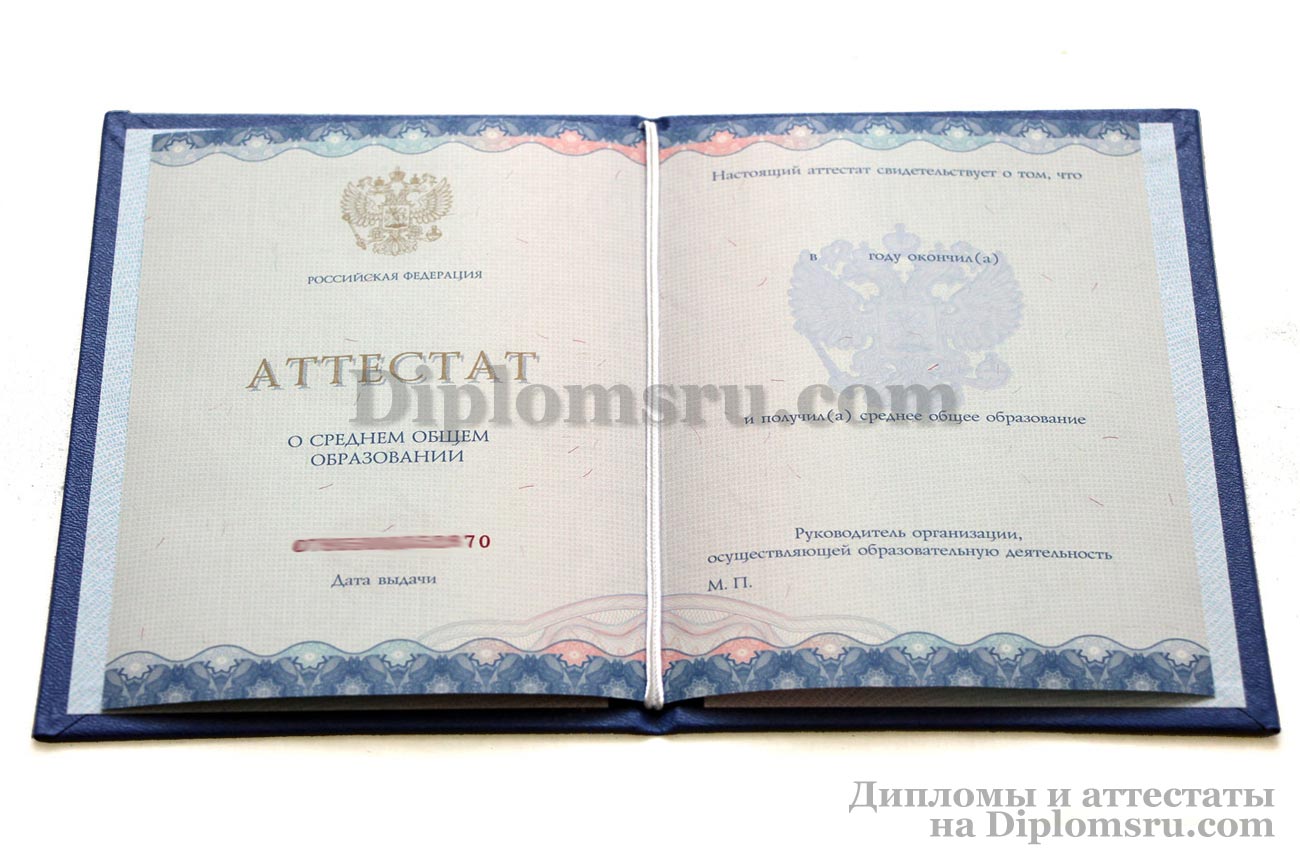 Аттестат о среднем (полном) общем образовании нового образца. Именно такие аттестаты выдают выпускникам школ с 2014 года и по настоящее время. При заказе Вы можете выбрать любую школу Москвы и других городов России. Заверим аттестат актуальной печатью и подписью директора.