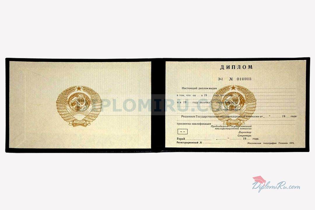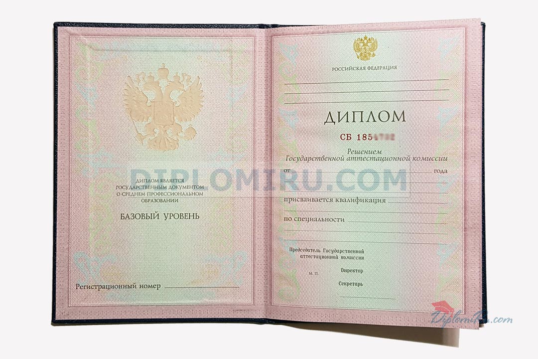Диплом об окончании указанного ССУЗа до 1996 года. Бланк «Гознак»