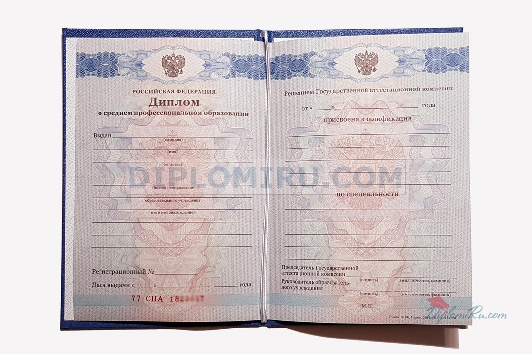 Диплом об окончании указанного ССУЗа в 2004-2006 годах. Бланк «Гознак»